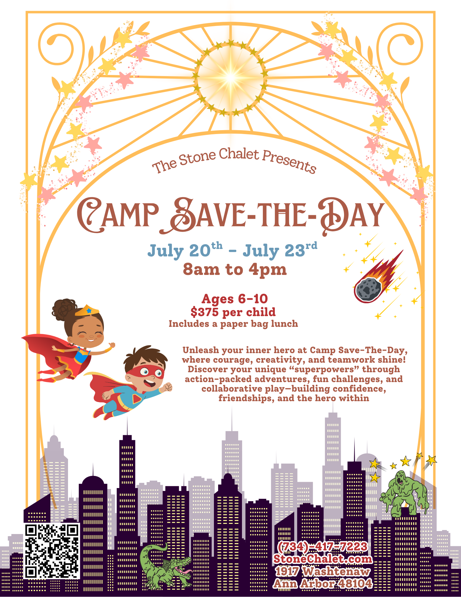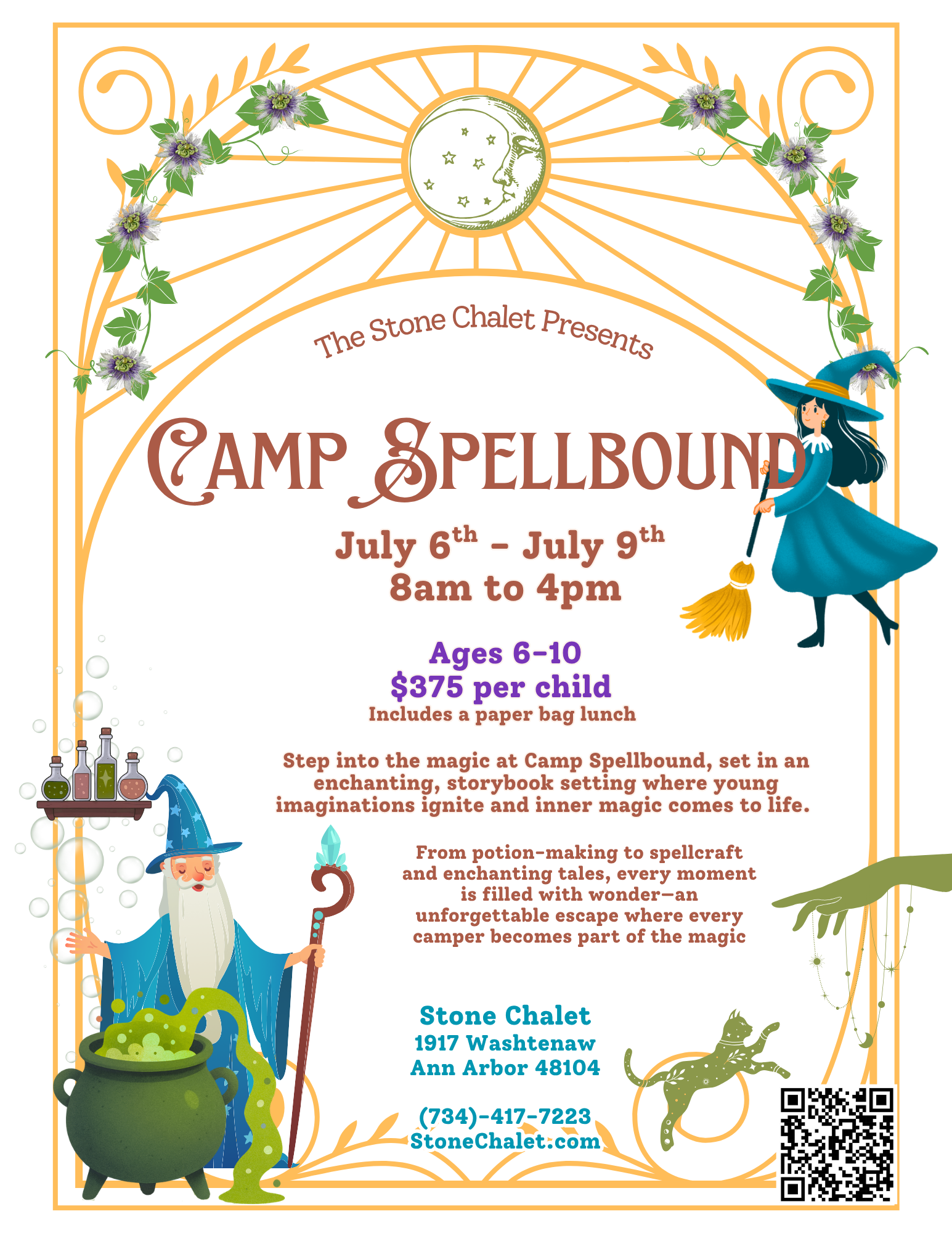 At the Stone Chalet Summer Camps in Ann Arbor, each week invites children into a new world of imagination, creativity, and adventure. From the magical spellcraft of Camp Spellbound, to the nature-inspired artistry of Flora & Fauna Art Camp, the swashbuckling journeys of Barnacle Bay, and the whimsical fairy realms of Thistle & Wing Summer School, every experience is thoughtfully designed to spark curiosity and wonder. Campers can step into heroic adventures at Camp Save-The-Day or live out a royal fairy tale at Once Upon a Summer Camp, all within a beautiful, storybook setting that inspires exploration and play.