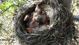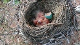 They are starting to look like cute little birds. The mother was sitting on the nest and the babies are getting so big they are popping out from under her.